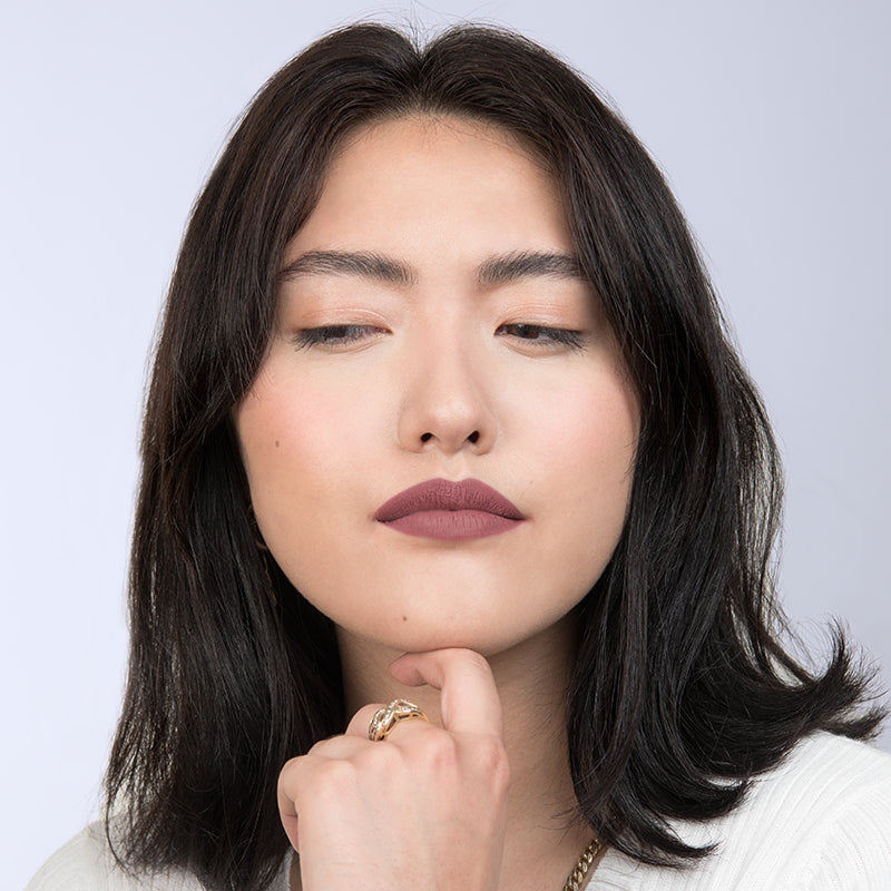 Tax Returns matte liquid lipstick is a soft, dusty deep pink.